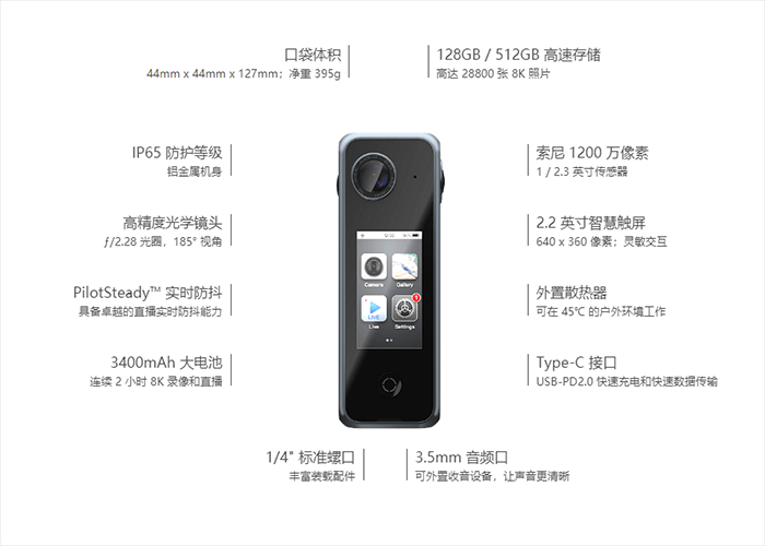 【户外版】PilotOne圆周率8K全景云直播5GVR相机
